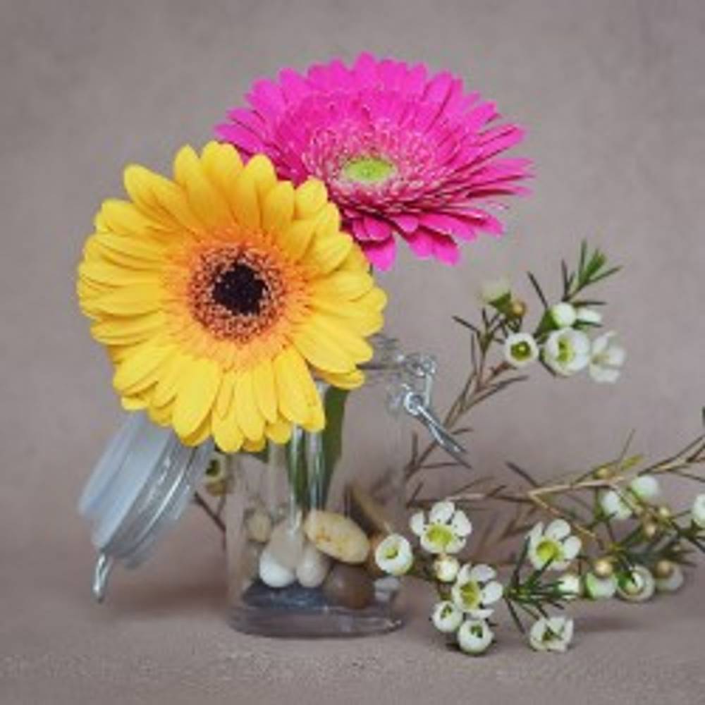 Die auffallenden und farbenfrohen Blüten der Gerbera dürfen in einem bunten Osterstrauß einfach nicht fehlen.