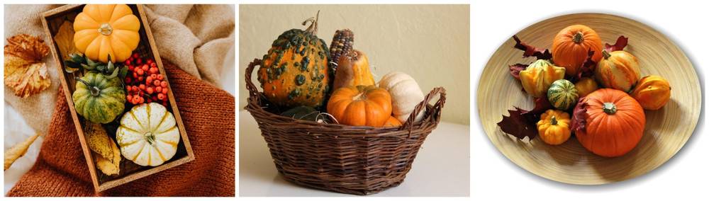 Herbstliche und farbenfrohe Dekorationen mit Zierkürbissen für zu Hause